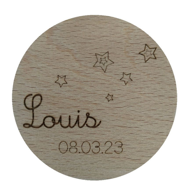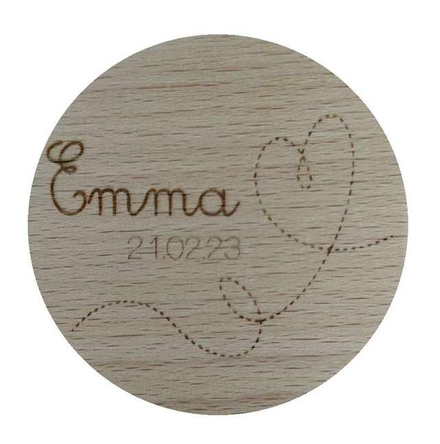 Vous pouvez choisir de graver simplement le PRENOM, ou d'y ajouter la DATE de NAISSANCE de l'enfant,