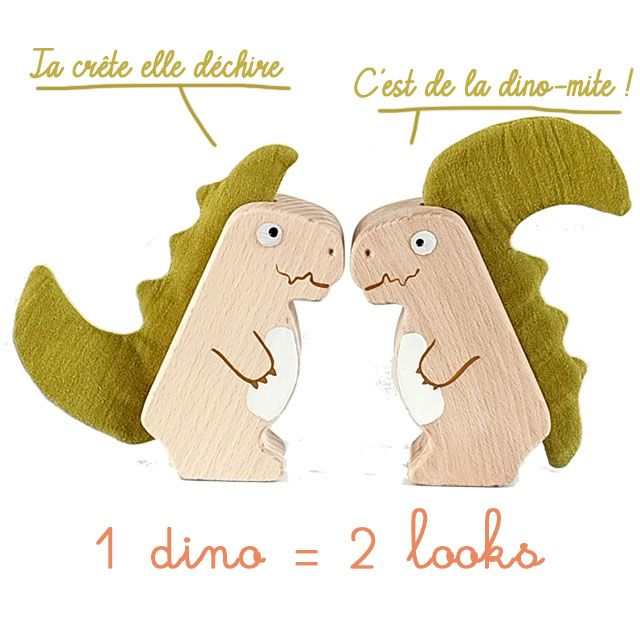 Glisse-la sur le dos de IGOR LE DINOSAURE et donne-lui un air plus fun en t'amusant à la mettre dans l'autre sens !